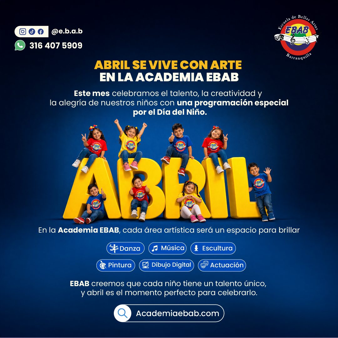 Academia EBAB ofrece clases de arte en Barranquilla para todas las edades. Con más de 15 años de experiencia, brindamos formación en música, danza, pintura y teatro con metodología personalizada para potenciar tu talento.