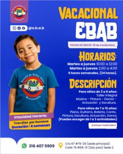 En el blog de EBAB, te invitamos a explorar un espacio dedicado a las artes y su impacto significativo en el desarrollo personal. Aquí, encontrarás las últimas noticias sobre nuestros programas de música, danza, pintura, actuación, y mucho más. Además, mantenemos a nuestros lectores informados sobre nuestras novedades, eventos y artículos que exploran cómo el arte puede enriquecer tanto el desarrollo personal como el creativo de niños y adultos.